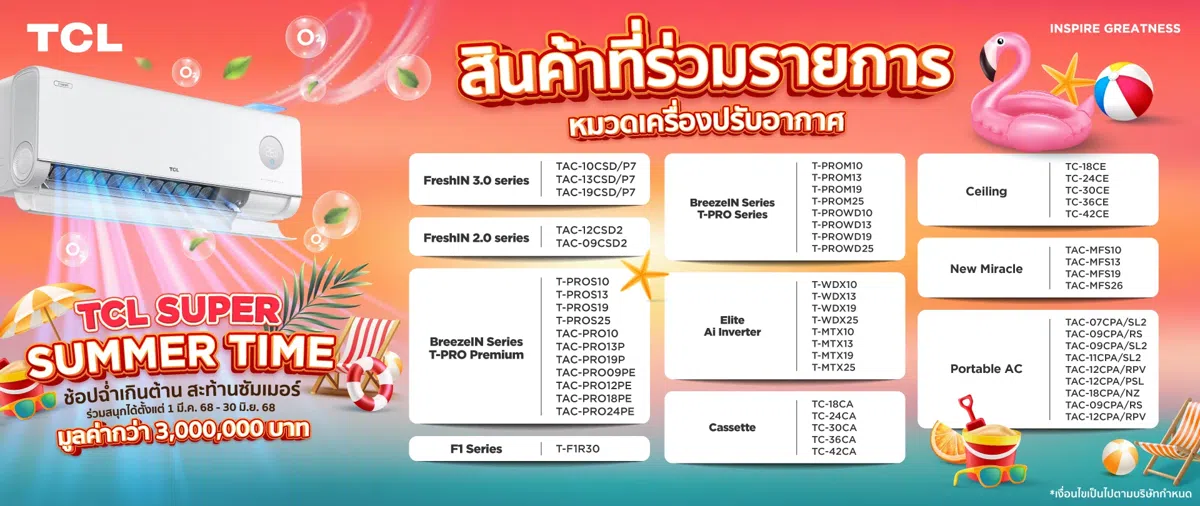 - จุดเด่น: เป็นแบรนด์จีนที่มาแรงในเรื่องความคุ้มค่า ให้สเปกที่ดีในราคาที่จับต้องได้ มีระบบ Inverter ที่ประหยัดพลังงาน และฟังก์ชันที่จำเป็นครบครัน